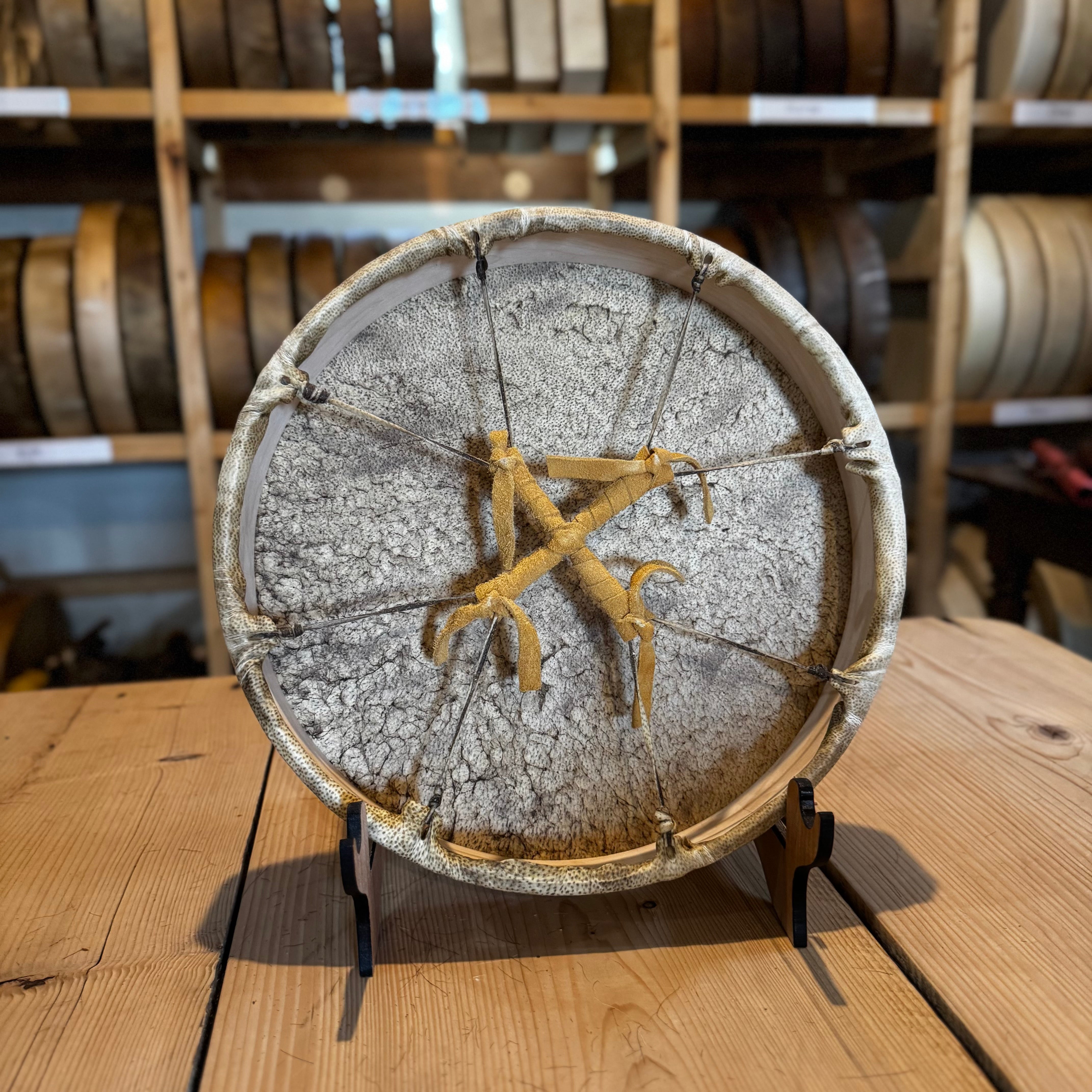 These traditional Native American-style frame drums are handcrafted with intention, care, and deep respect for both the materials and the lineage they represent.