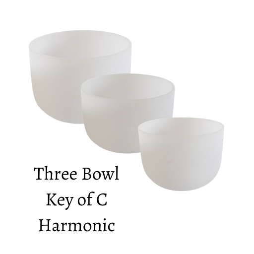 This set includes the Perfect Fifth and Perfect Third Harmonic in The Key Of C: 3 precisely-tuned Frosted Crystal Singing Bowls in 440hz or 432hz tuning, chosen in consideration of their voice, tone, pitch and tuning: