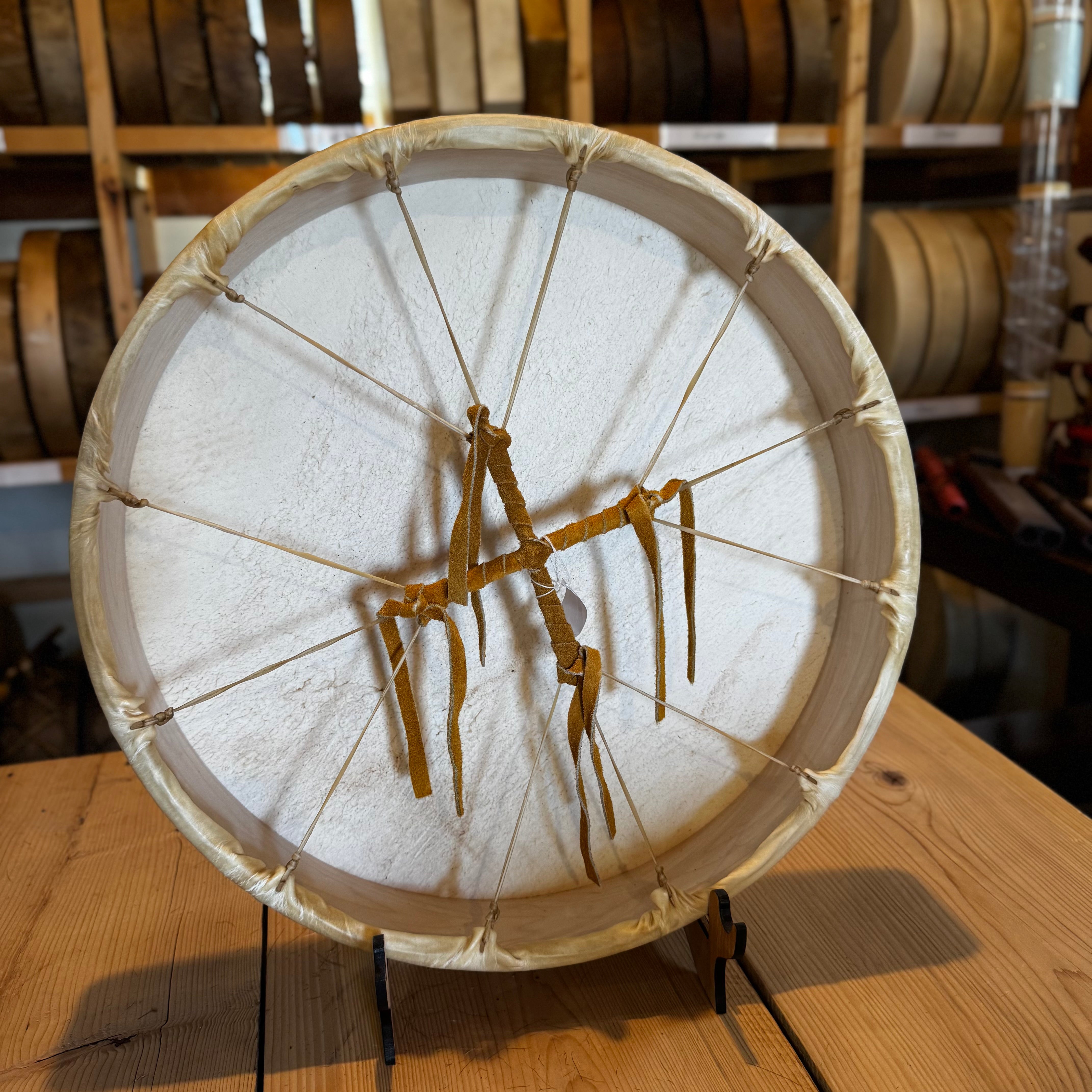 These traditional Native American-style frame drums are handcrafted with intention, care, and deep respect for both the materials and the lineage they represent.
