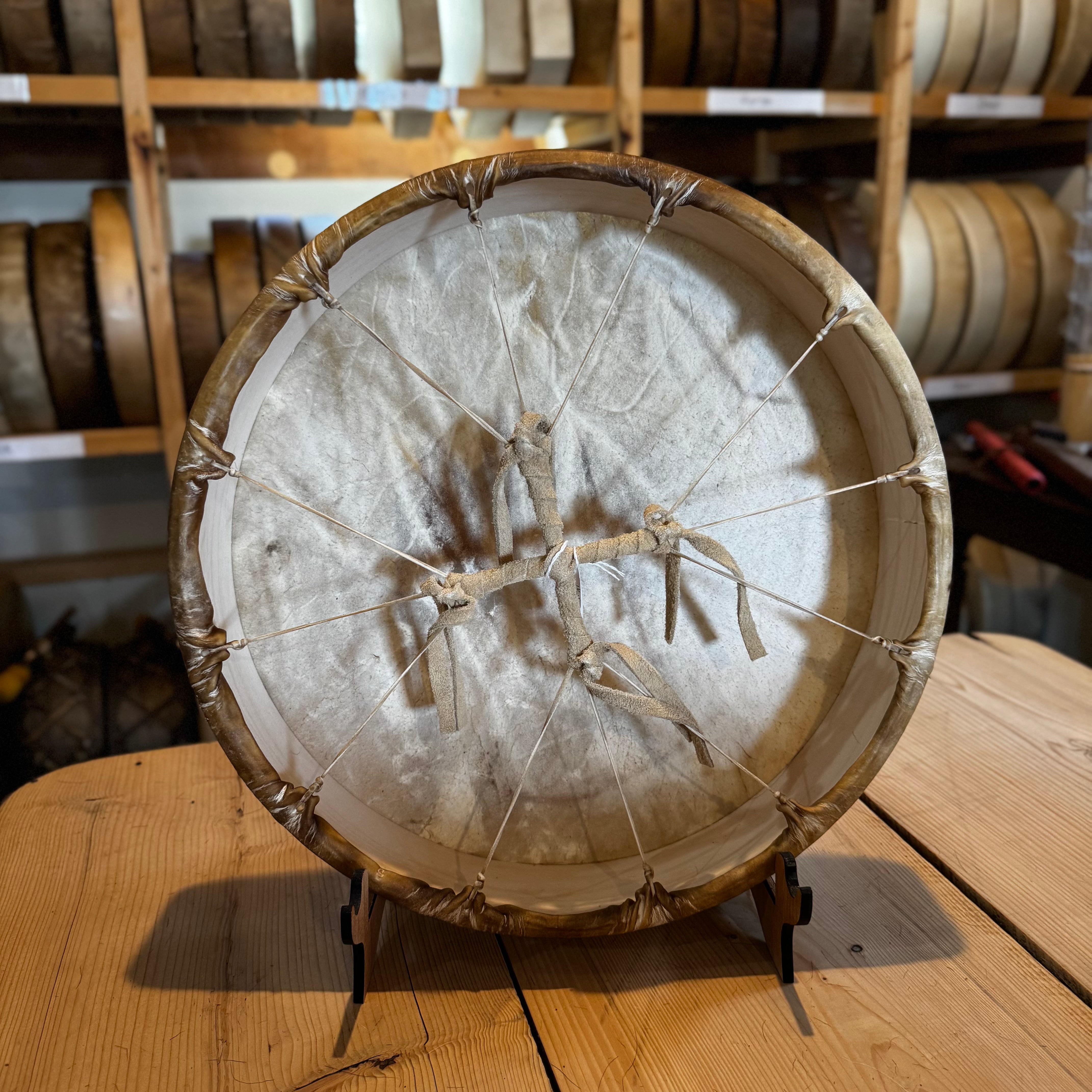 These traditional Native American-style frame drums are handcrafted with intention, care, and deep respect for both the materials and the lineage they represent.