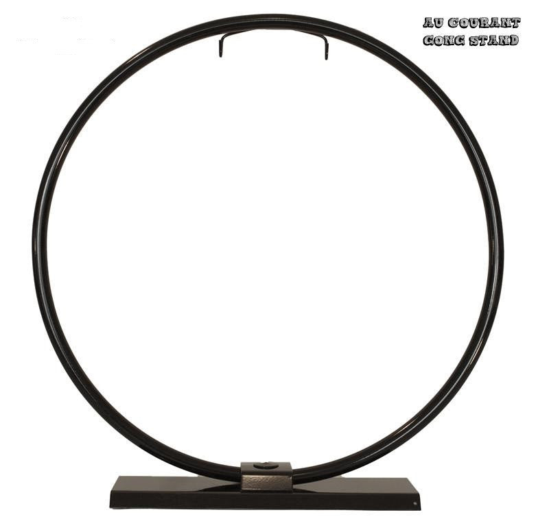 The Au Courant gong stand features a full circular metal frame, creating a clean and centered presentation for smaller gongs. The round design echoes the shape of the instrument itself, offering a sense of visual harmony and cohesion.