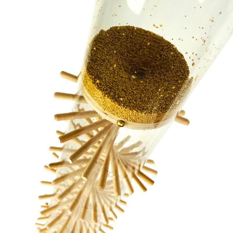 Rain sticks create a flowing cascade of sound as seeds or beads travel slowly through the length of the instrument. The sound unfolds like steady rainfall. In meditation and sound healing sessions, rain sticks are often used to calm the atmosphere of a room or to create transitions between different phases of a practice. Their sound naturally encourages slower breathing and deeper listening.