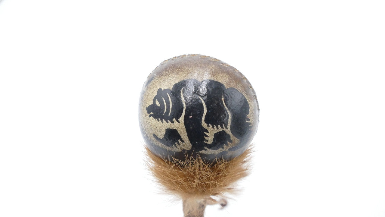 Made from rawhide and painted by hand, the imagery reflects a personal and traditional style, with each piece expressing its own character. While certain themes may repeat, no two rattles are exactly alike.