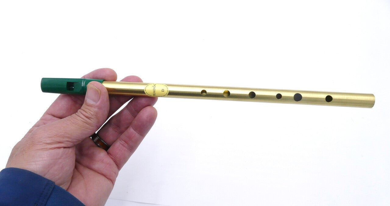 This original Irish brass Penny whistle is Made in Dublin, Ireland enjoy this feadog brass Irish whistle in the key of D, which includes fingering chart and international instruction sheet with several songs to get any beginners and students started. You will not be disappointed with this beautiful, original Item by Feadog.