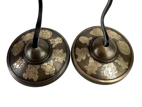 Premium Engraved Auspicious Symbol Tibetan Hand Tingsha Cymbals